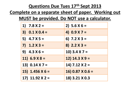 Multiplying Decimals Homework Teaching Resources